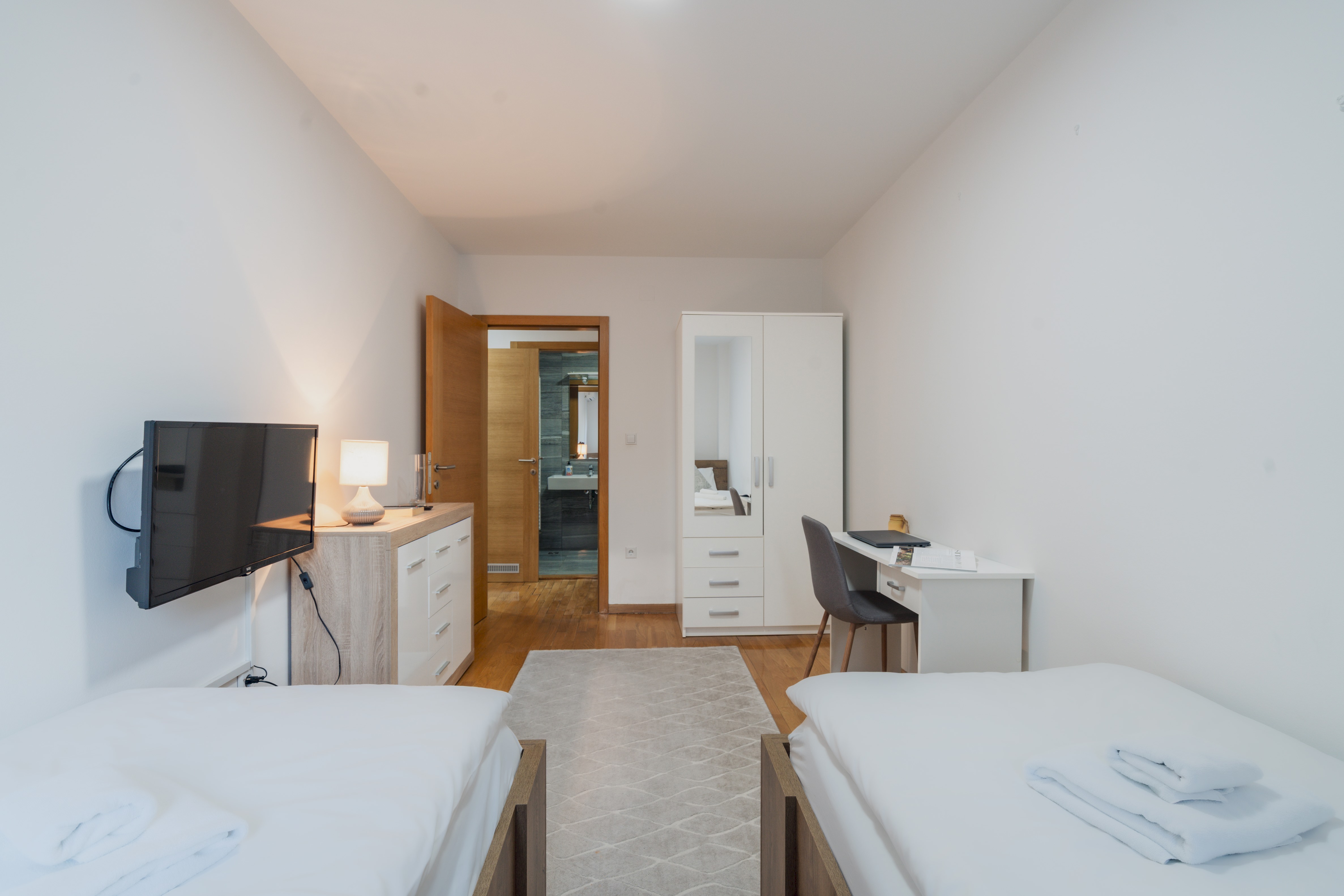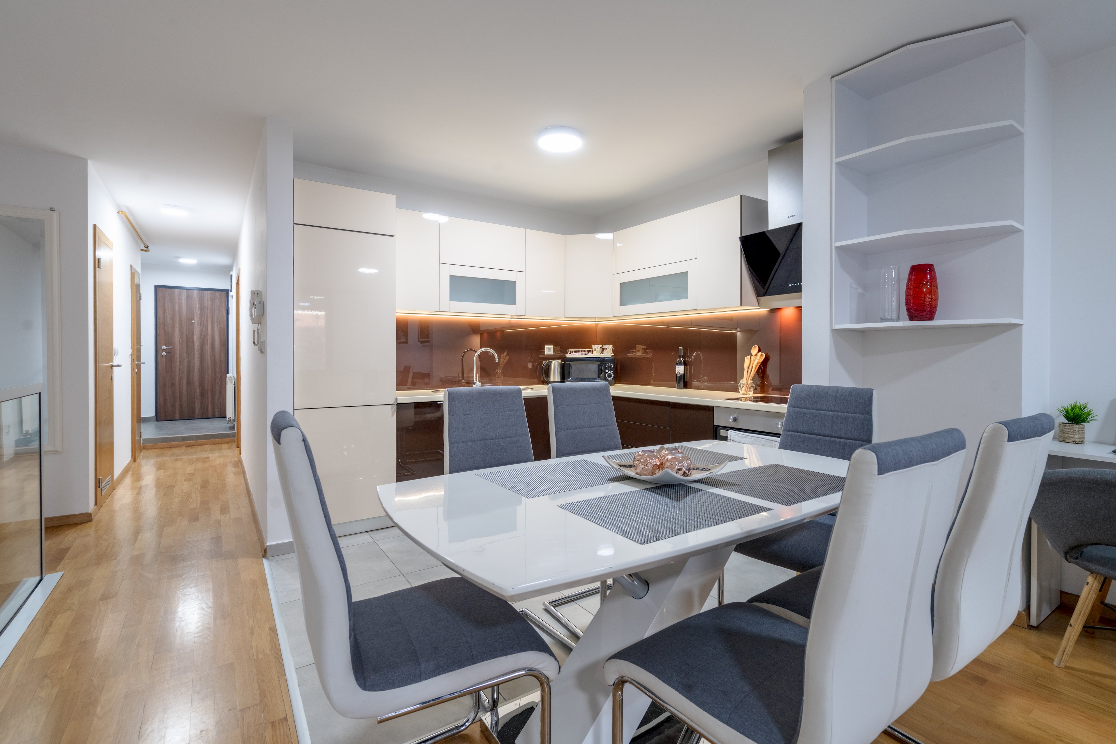 Amenities: iron & ironing board, bed linen & towels, washing machine, dishwasher, cable tv, satellite tv, air conditioning, underground parking, free cot on request, elevator, no smoking rooms/facilities, no pets allowed, heating, no parties, free internet access, king size bed, queen size bed, single bed